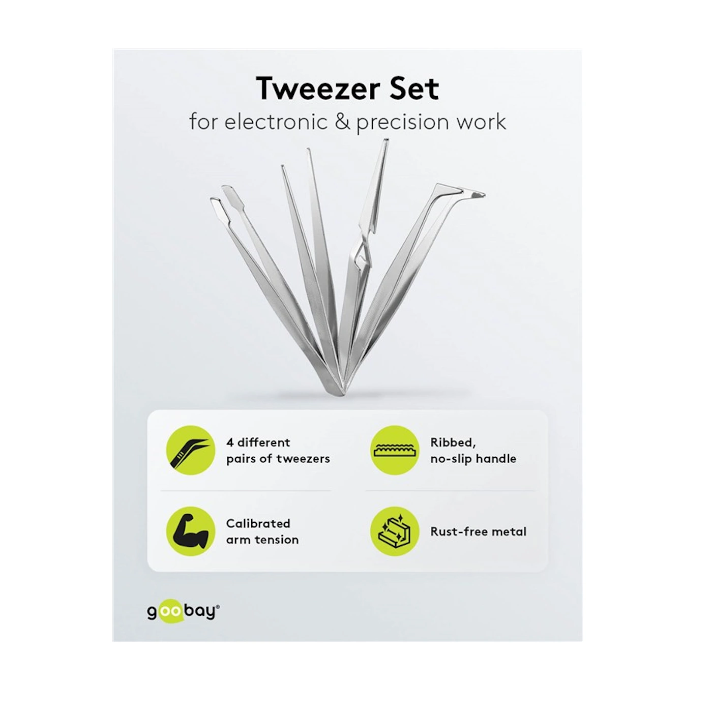 Zestaw pęset precyzyjnych to komplet 4 wysokiej jakości narzędzi do delikatnych prac. Wykonane ze stali nierdzewnej ESD, zapewniają bezpieczeństwo przy pracy z wrażliwymi komponentami elektronicznymi, płytkami PCB i drobnymi elementami.