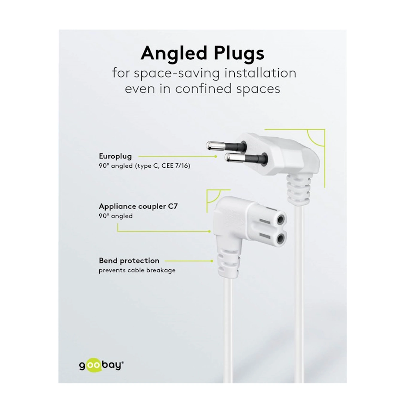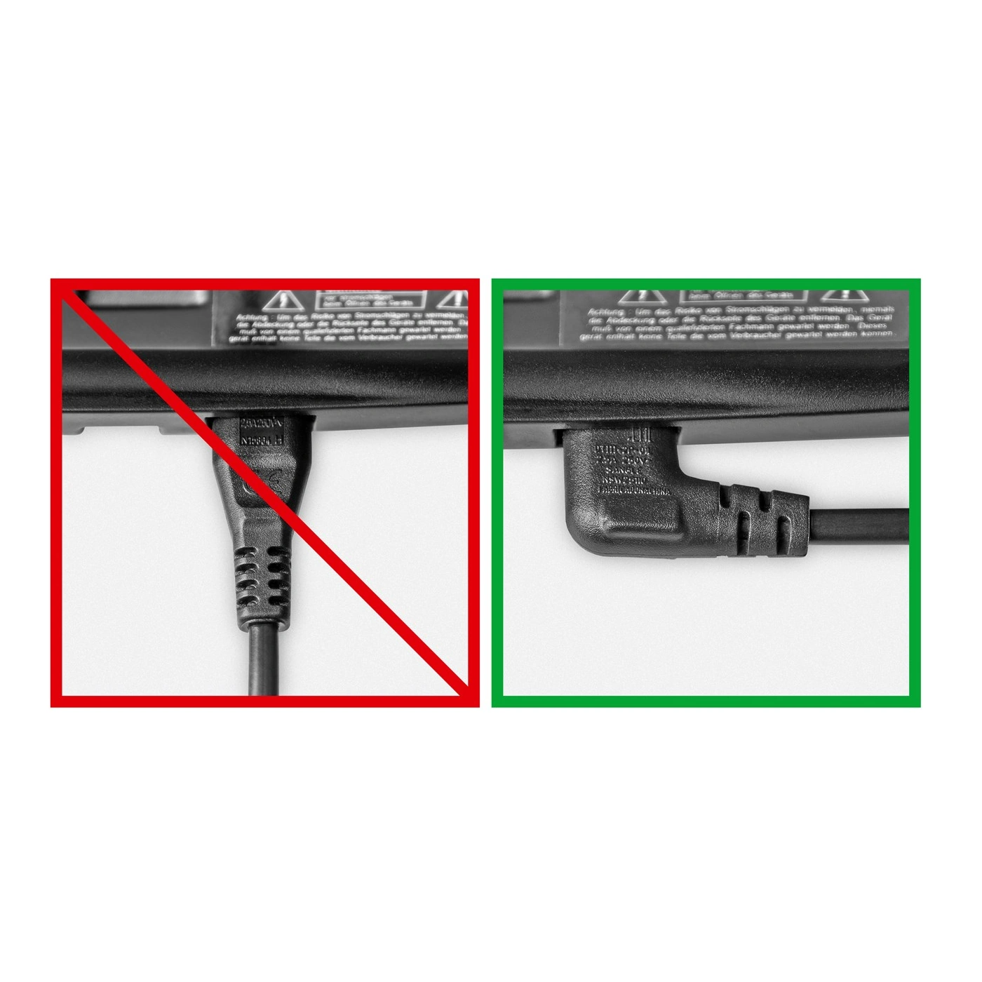 Dzięki kątowej wtyczce kabel nie wystaje i nie blokuje dostępu do innych gniazd – praktyczne rozwiązanie w każdym biurze i domu.