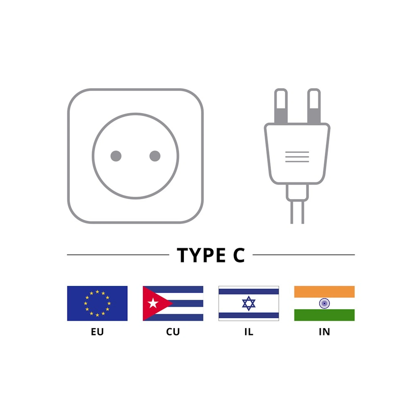 Przewód sieciowy to solidny kabel zasilający 230 V o długości 2 metrów z wtykiem kątowym 90° (IEC C13 – IEC C14). Kątowa konstrukcja wtyczki ułatwia podłączenie w ciasnych miejscach – za biurkiem, szafką RTV czy regałem serwerowym – bez napinania kabla i nieestetycznego zaginania.