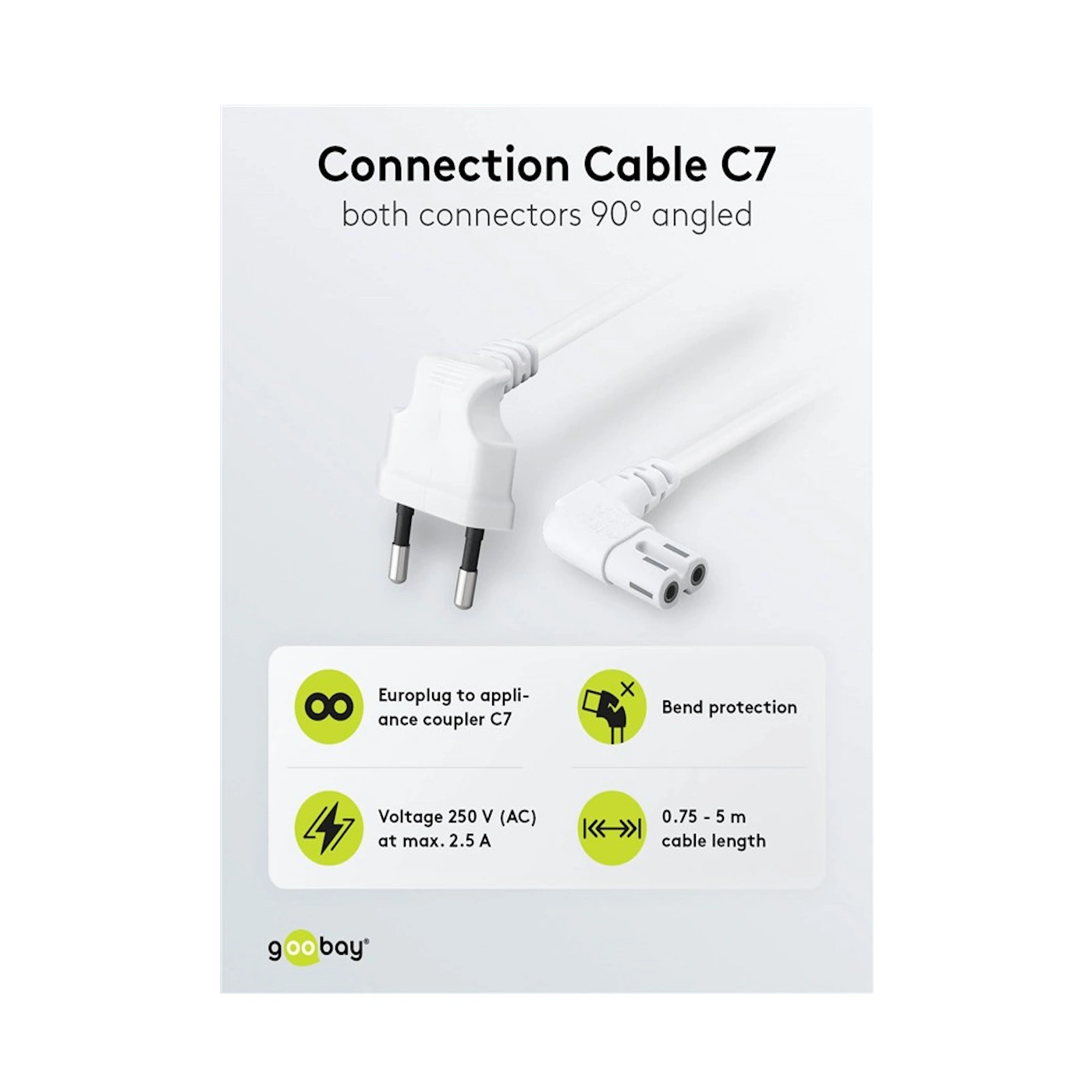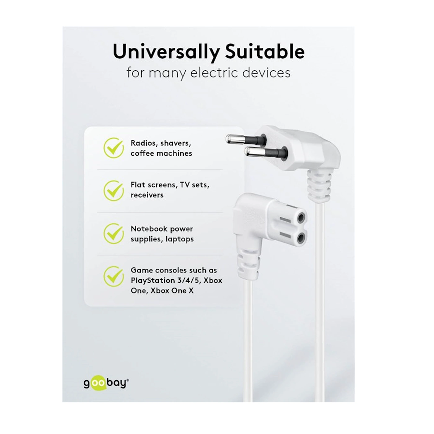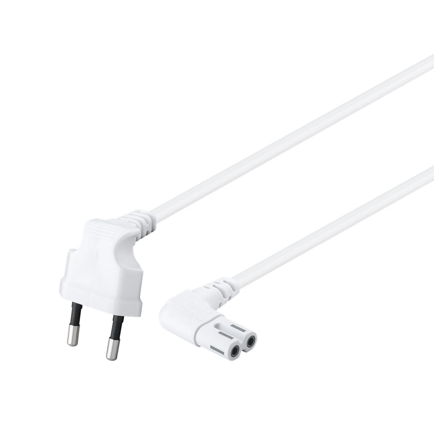 Przewód sieciowy 230V 2 m kątowy, biały – kabel IEC C13 z wtykiem 90°