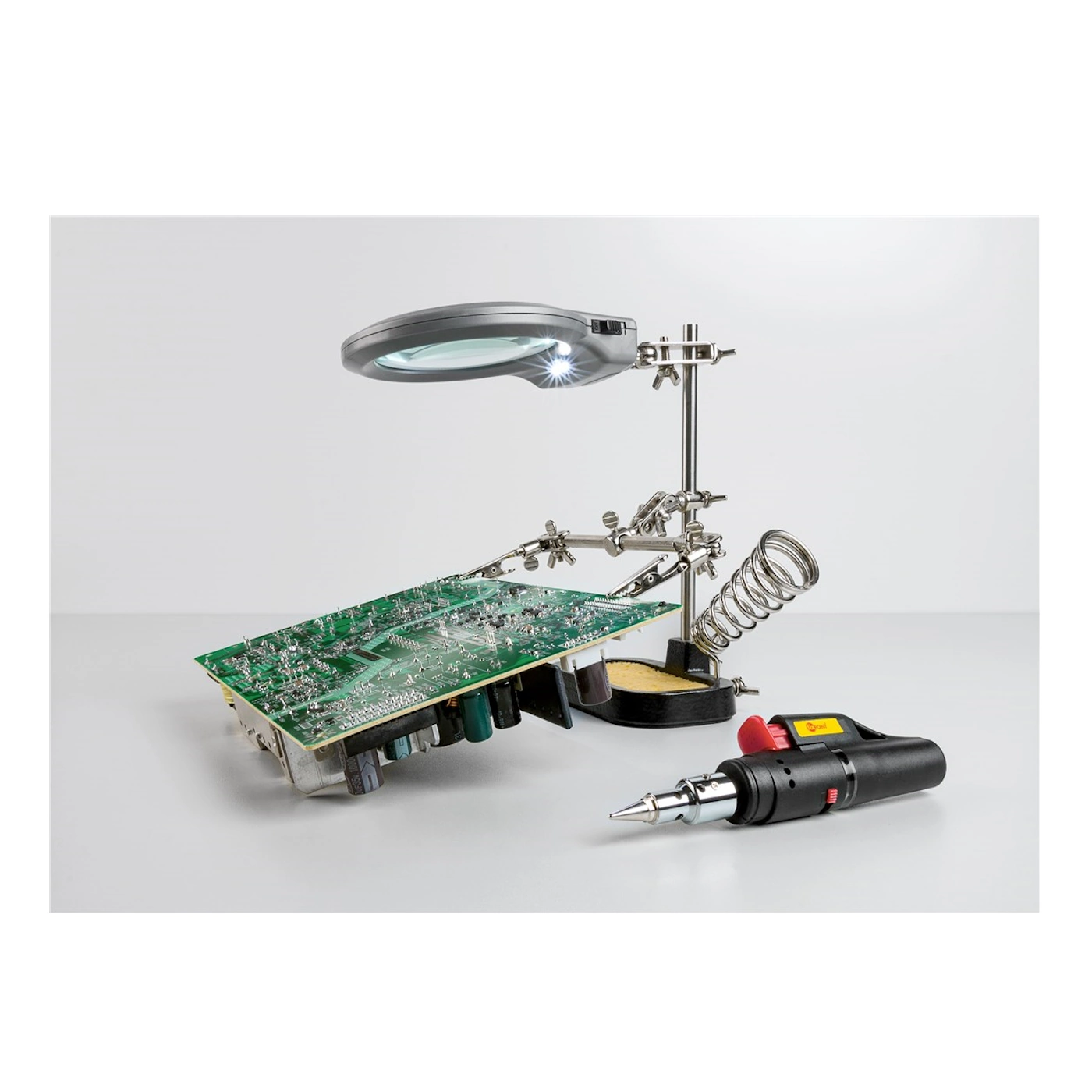Uchwyt lutowniczy z lupą – trzecia ręka z podświetleniem LED