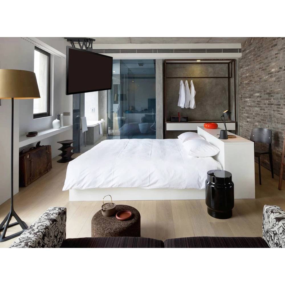 1. Lofty i mieszkania z antresolą – telewizor wisi nad kanapą na dole, nie zajmuje miejsca na ścianie.